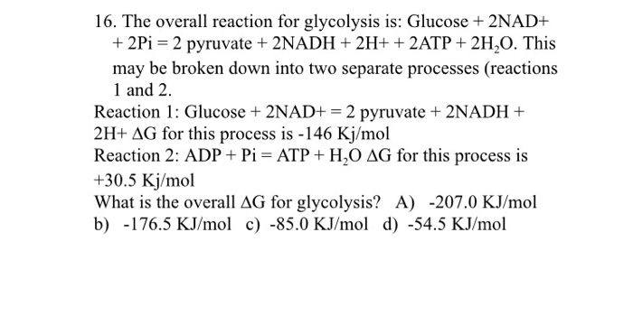 Glycolysis is a metabolic process at the start of the chain of reactions within the process of cellular respiration production of cellular energy. The subsequent reactions of glycolysis constitute an energygeneration phase in which a net of two molecules of ATP are formed by substrate-level phosphorylation per glucose molecule. Remember that for any reaction the free energy change depends on two factors. C 6 H 12 O 6 2 NAD 2 ADP 2 P 2 pyruvic acid CH 3 COCOOH 2.